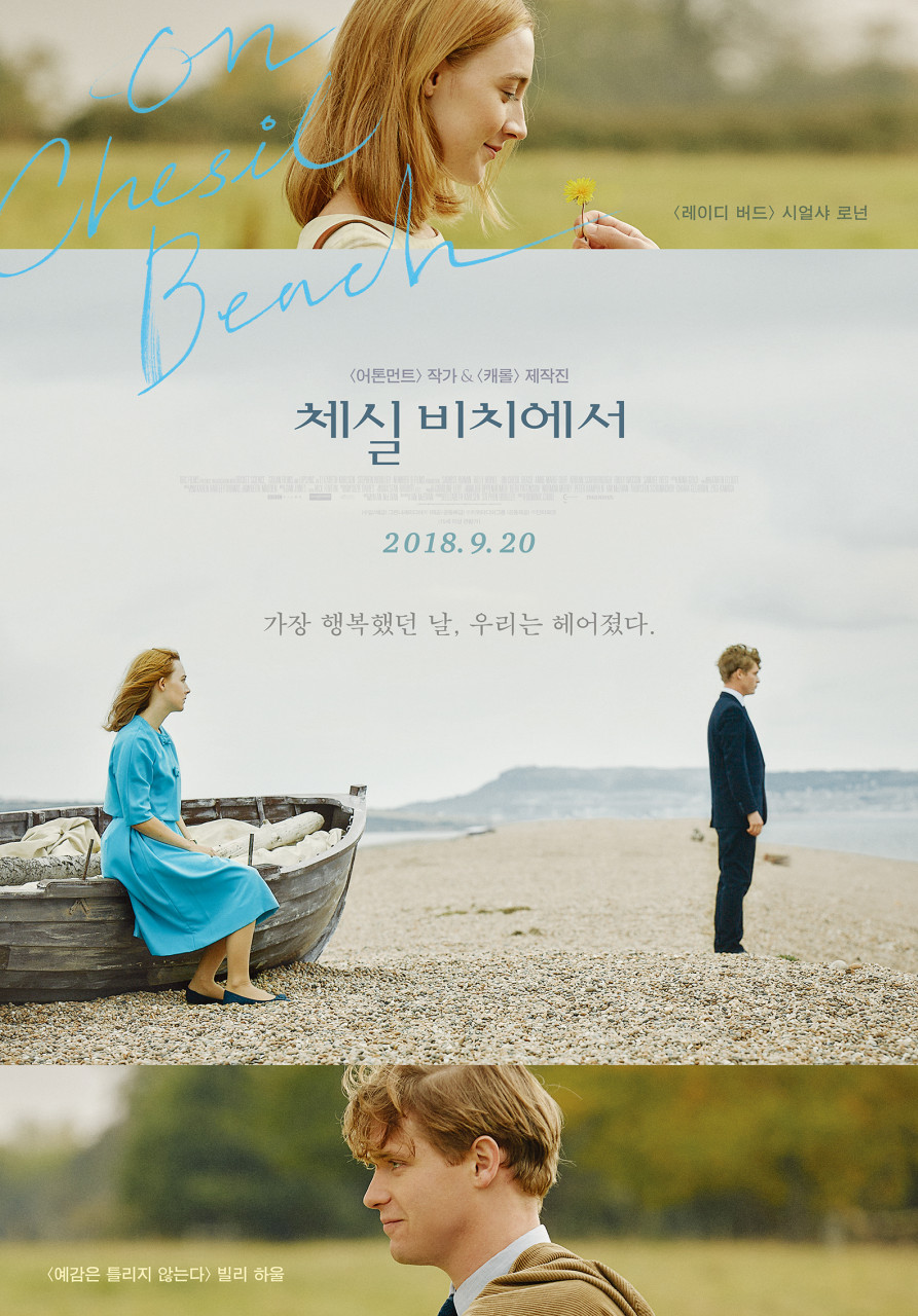 영화 '체실 비치에서(On Chesil Beach, 2018)'는 이언 매큐언(Ian McEwan)의 동명 소설을 원작으로 한 작품으로, 1960년대 초 영국 사회의 억압된 분위기 속에서 결혼 첫날밤을 맞은 두 젊은 부부가 겪는 정서적 단절과 오해, 사랑과 상실의 서사를 다룬 감성 멜로드라마입니다.. 감독은 도미닉 쿡(Dominic Cooke)이며, 주연은 시얼샤 로넌(Saoirse Ronan)과 빌리 하울(Billy Howle)이 맡아, 섬세하고 절제된 연기로 두 인물 간의 심리적 충돌과 감정의 파열을 섬세하게 표현하였습니다.