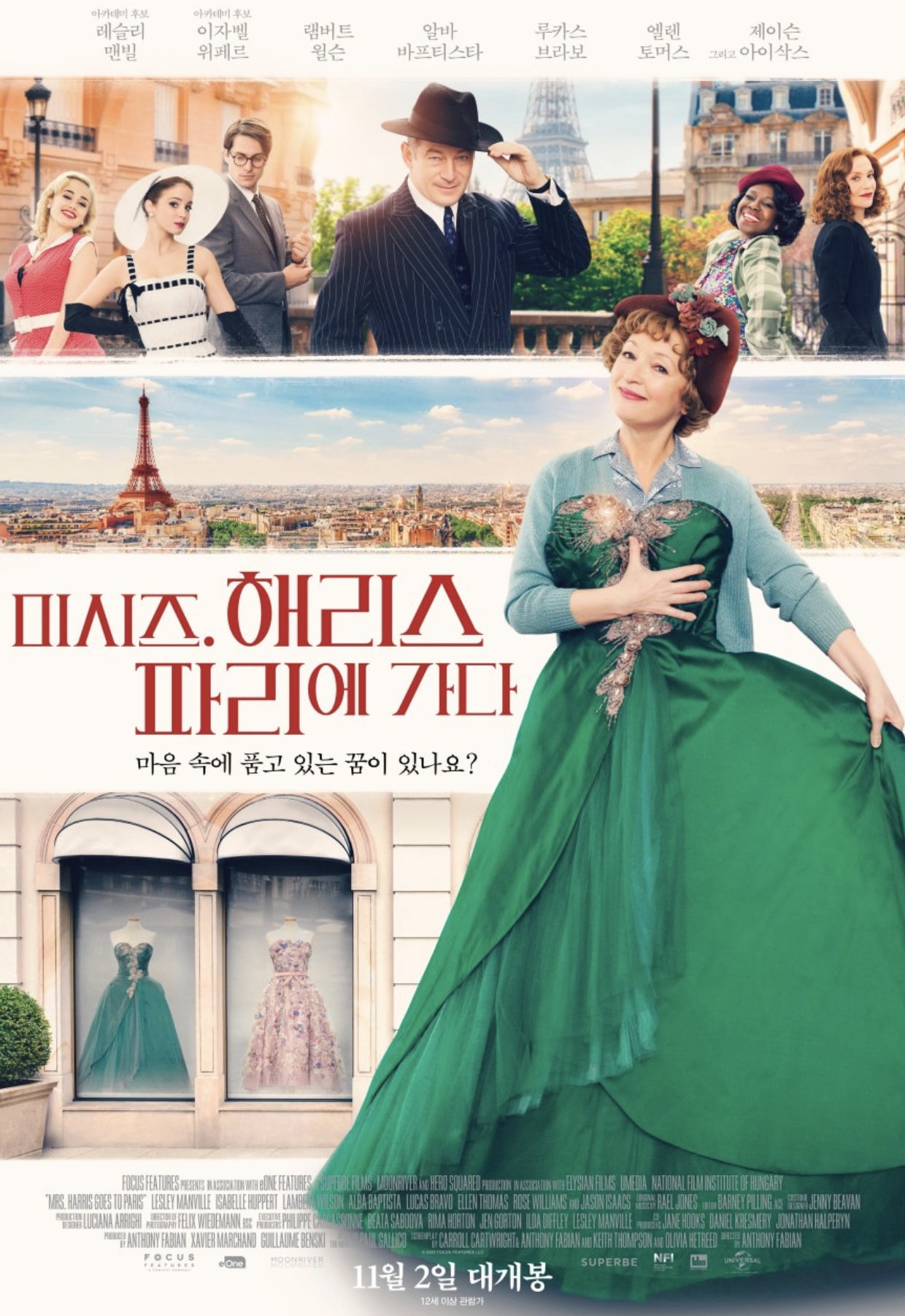 영화 '미시즈 해리스 파리에 가다'는 2022년 개봉한 영국·헝가리 합작 드라마로, 폴 갈리코의 동명 소설을 원작으로 한 작품입니다. 1950년대 런던을 배경으로, 평범한 가정부가 어느 날 파리에서 디올 드레스를 직접 구입하겠다는 소박하면서도 위대한 꿈을 품고 도전하는 이야기를 담고 있습니다. 감독 앤서니 파비안은 이 작품을 통해 단순한 패션 영화가 아니라, 꿈을 좇는 용기와 그 과정에서 피어나는 인간관계를 섬세하게 풀어냈습니다. 주연을 맡은 레슬리 맨빌은 따뜻하면서도 당당한 미시즈 해리스를 완벽하게 연기하며, 그녀가 품은 소망이 단순한 물질적 욕망이 아니라 삶을 풍요롭게 하고 새로운 세계로 발을 내딛게 하는 열망임을 보여줍니다. 영화는 패션의 화려함과 현실의 소박함을 대비시키면서도, 누구나 공감할 수 있는 희망의 메시지를 전해 관객의 마음을 사로잡습니다.