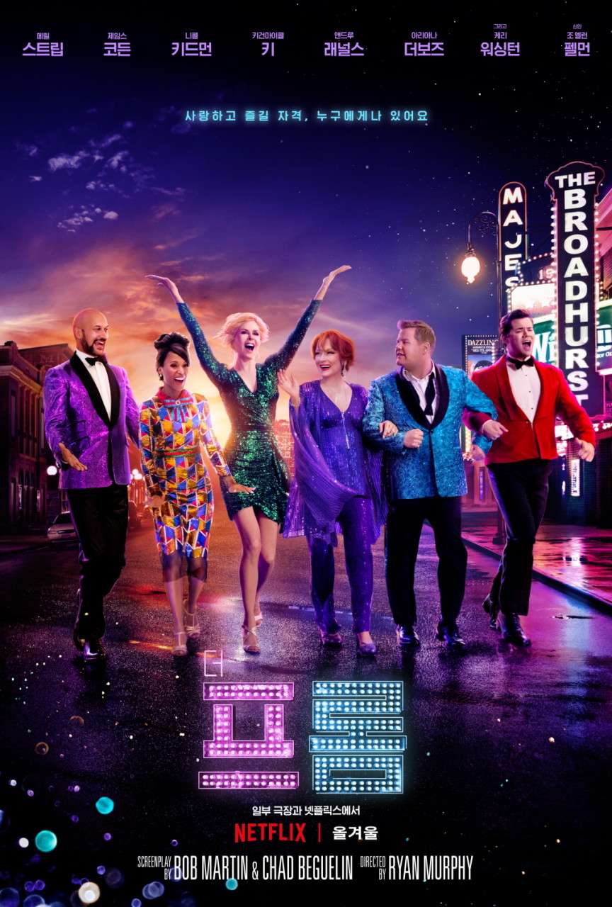 한편 뉴욕 브로드웨이에서는 네 명의 중년 배우들이 자신의 경력 위기를 맞고 있었습니다. 과거에는 화려했지만 이제는 관객들에게 외면받는 배우 디 디 앨런(메릴 스트립), 배리 글릭맨(제임스 코든), 그리고 춤과 노래는 훌륭하지만 스타성이 부족한 앤지(니콜 키드먼)와 트렌트(앤드루 라넬스)는 더 이상 무대에서 빛나지 못하고 있습니다. 그들은 자신들의 이미지를 회복하기 위해 ‘선행 프로젝트’를 찾아 나서고, 인터넷에서 엠마의 사연을 접하게 됩니다. 이 사건을 “완벽한 홍보용 기회”라고 판단한 이들은 곧바로 인디애나로 향합니다.